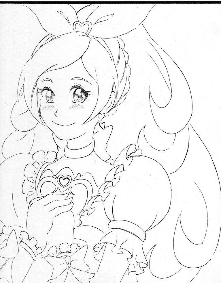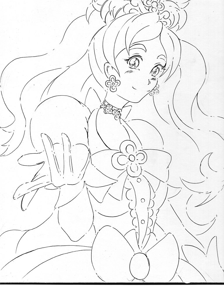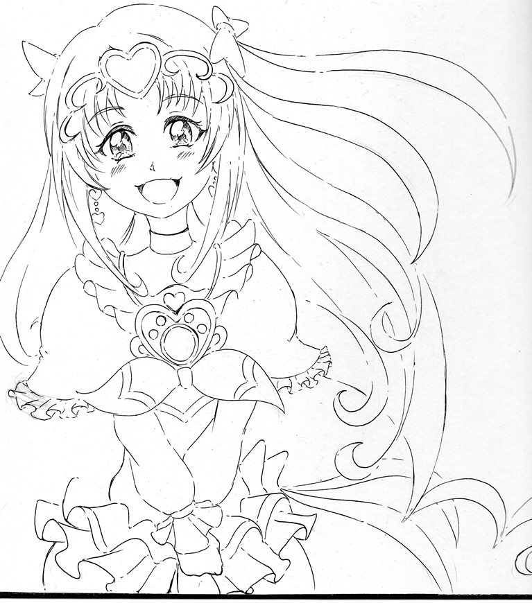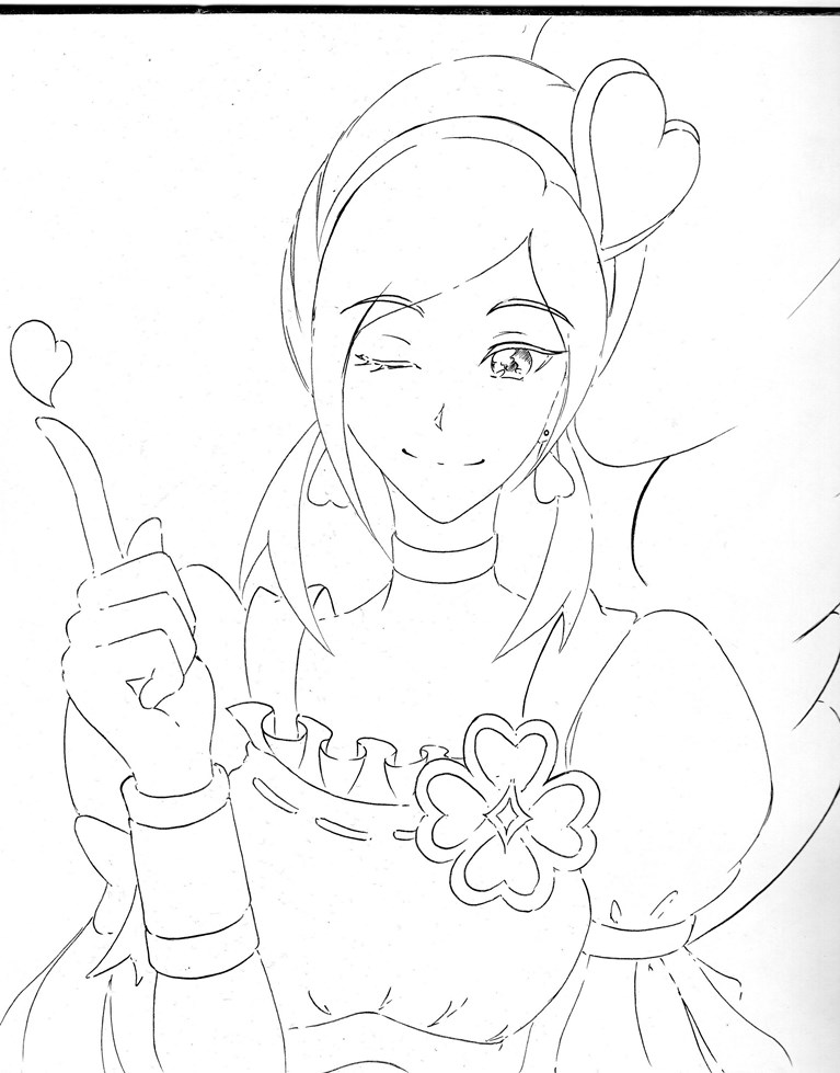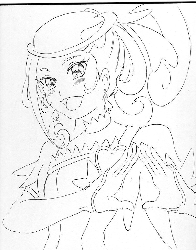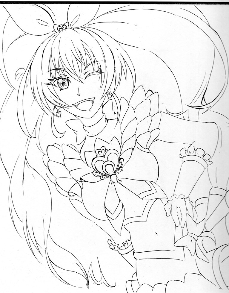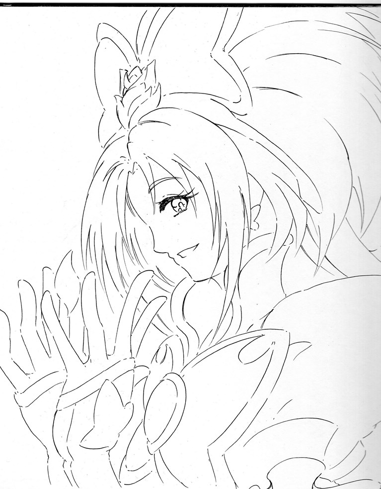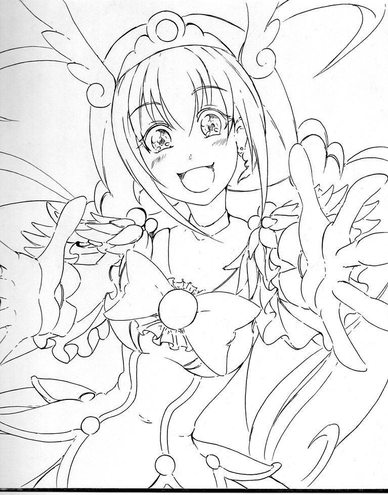 今日・・・い言うか昨日はキュアホワイトを描いてみまいした、線画ですがポーズが決まりづらかったです。