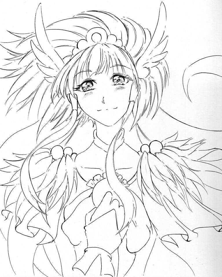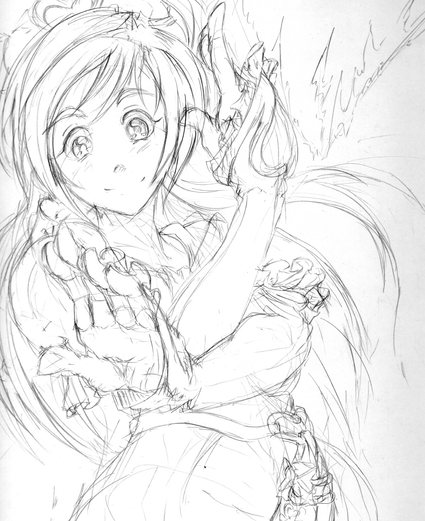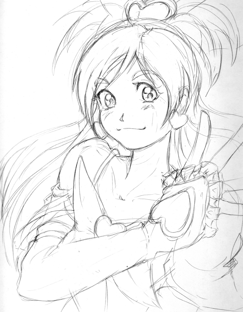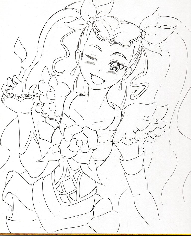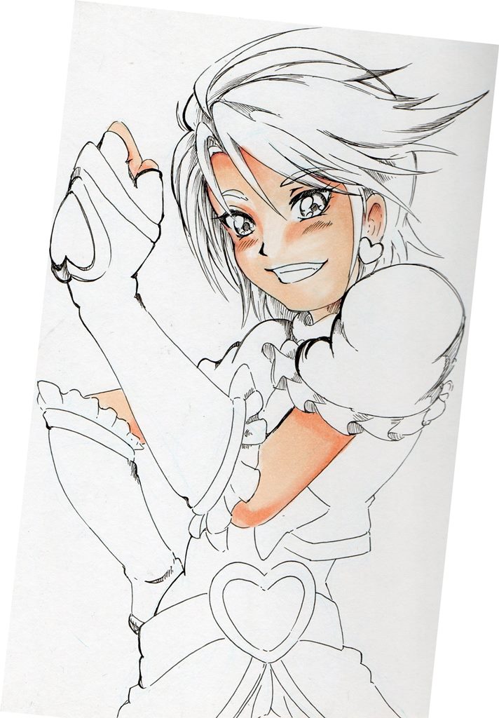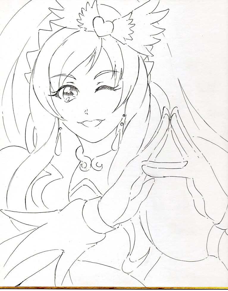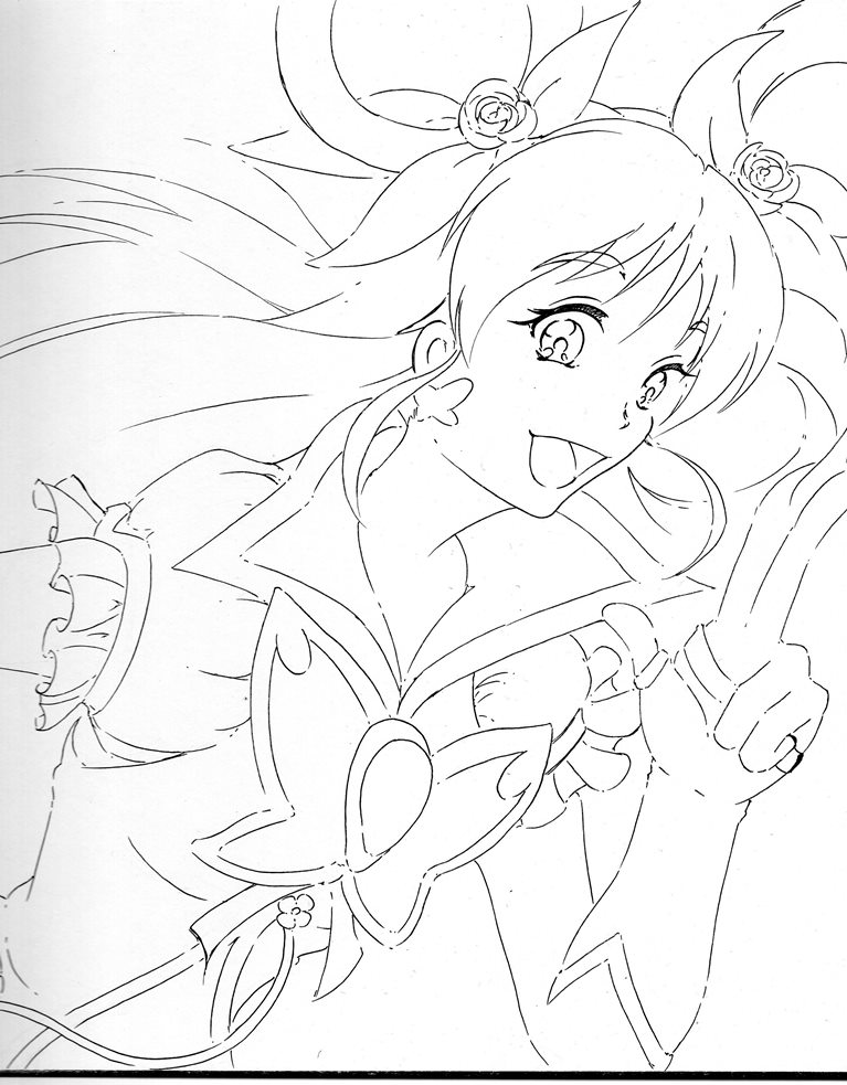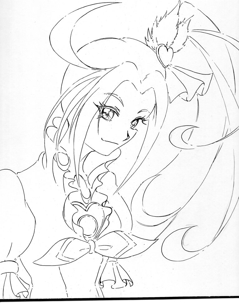今日・・・い言うか昨日はキュアホワイトを描いてみまいした、線画ですがポーズが決まりづらかったです。